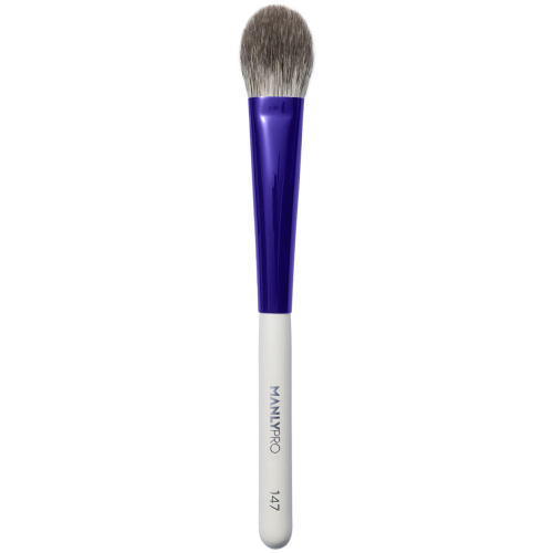 Кисть средняя плоская для пудры, румян и хайлайтеров из ворса полярной лисы.