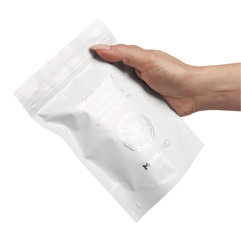 Экспресс-очищающие салфетки с маслом бергамота и антибактериальным эффектом для макияжных кистей.