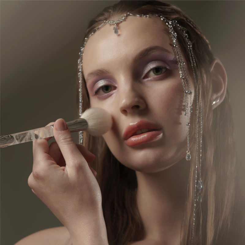 Веерная кисть для макияжа лица: для пудр, хайлайтеров, бронзеров, румян.