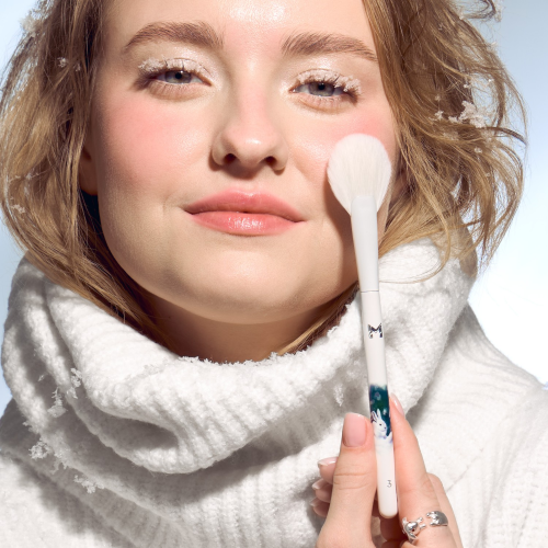 Веерная пушистая плоская кисть из искусственного ворса для любых пудр, сухих румян, скульпторов, бронзеров и хайлайтеров.