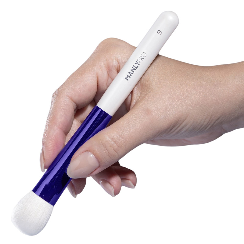 Короткая плоская кисть среднего размера из натурального отборного ворса козы класса "премиум". Для нанесения тональных основ, сухих или кремовых румян, корректоров и хайлайтеров.