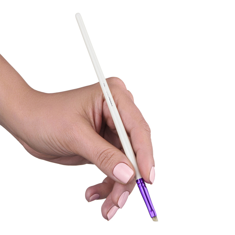 Маленькая плоская скошенная кисть из нейлона. Для детального макияжа бровей.